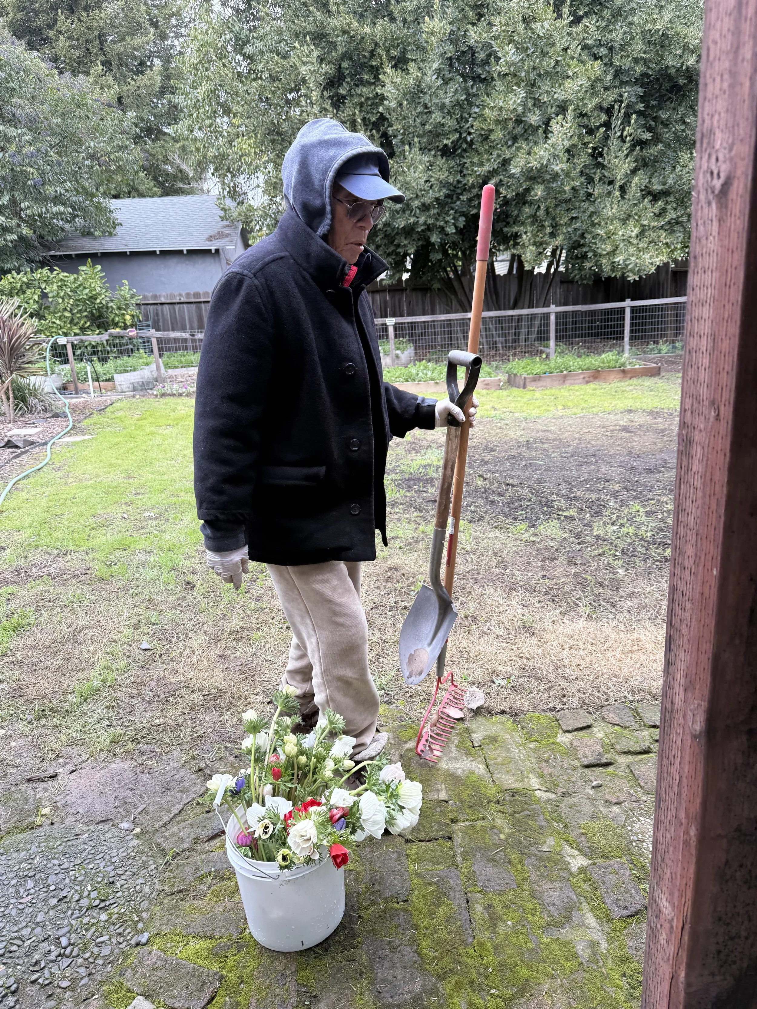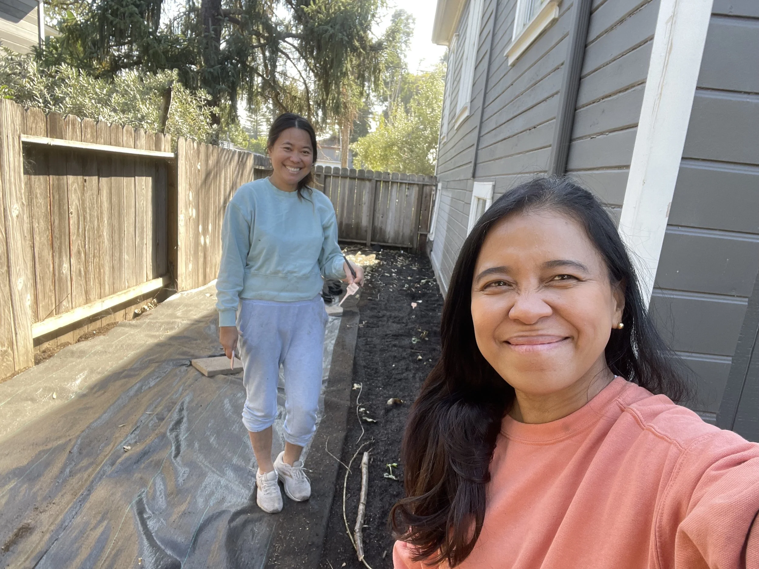Creating beauty is a team effort. My Filipino family shows up for garden labor and moral support, ready to help and make it happen.