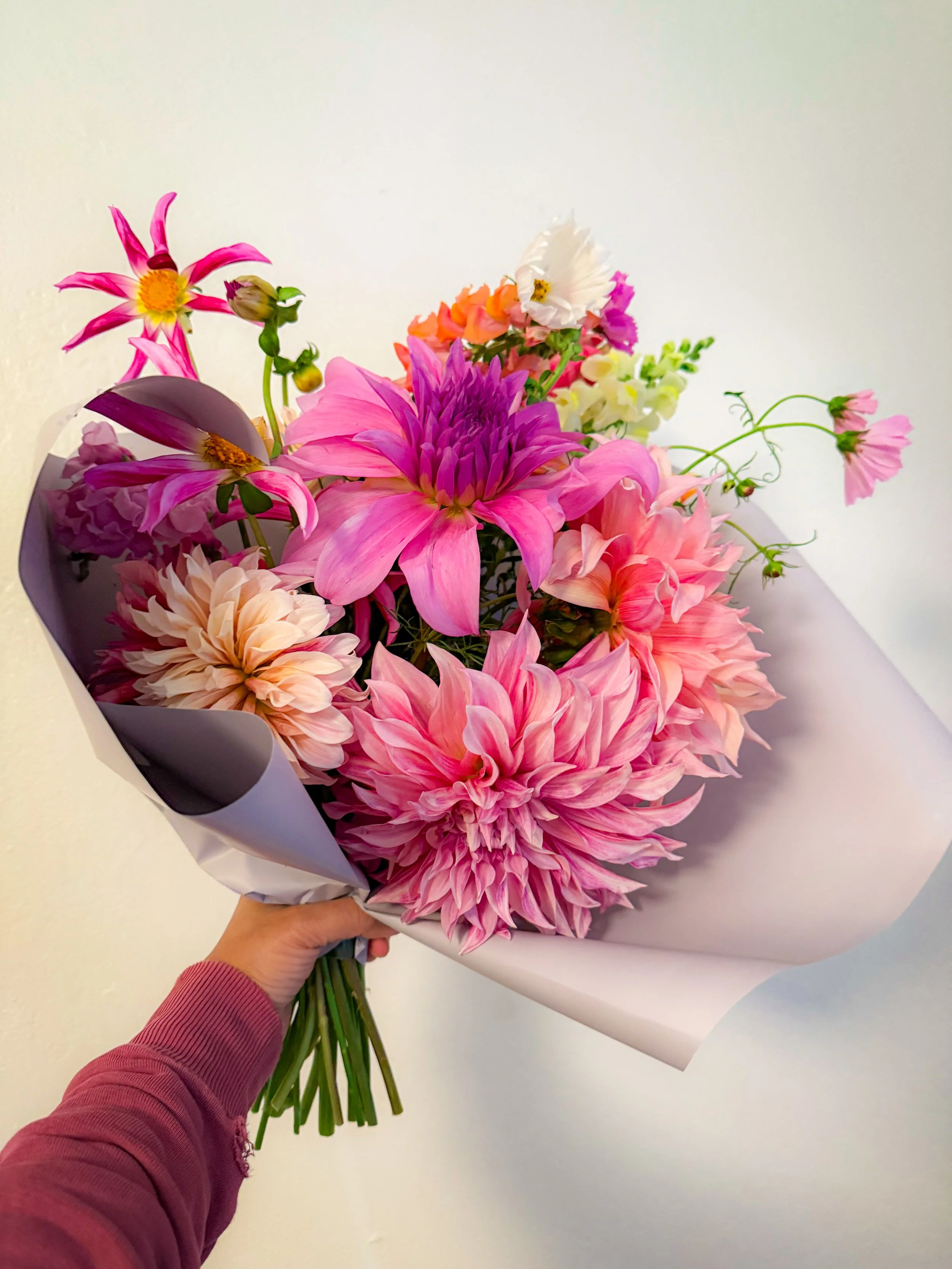 Because we work with what’s in season, the exact flower varieties and colors may vary from what’s pictured—but we promise every bouquet will be filled with the freshest blooms. No matter the season, your arrangement will be beautiful, vibrant, and sure to delight you or your recipient!