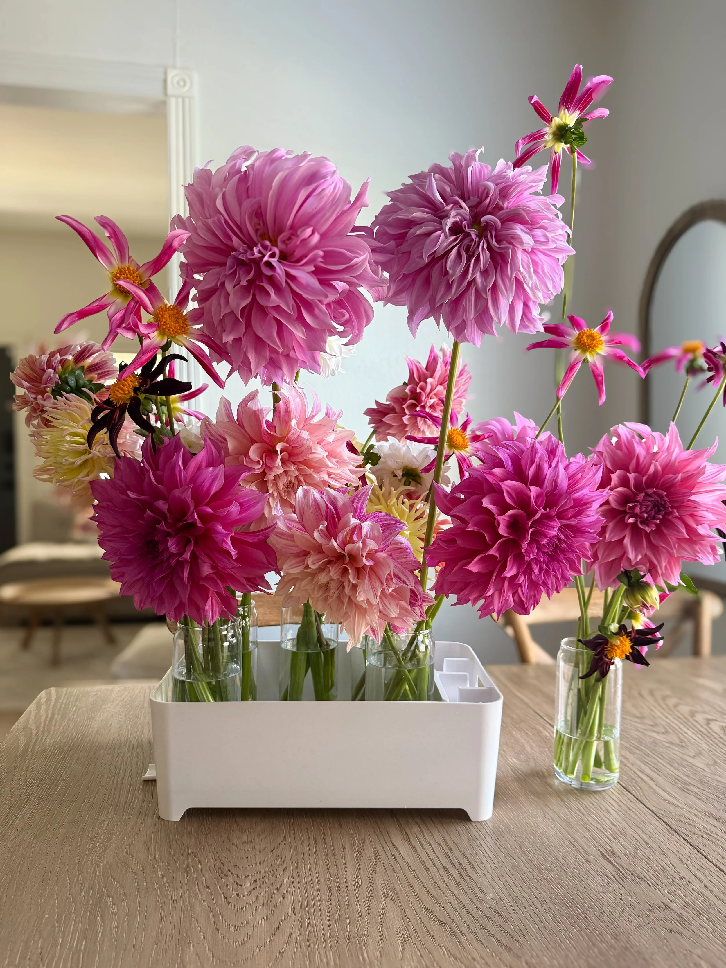 Each bouquet is designed using the freshest bloom of the season from our garden. While we don’t offer custom selections, our promise is that each arrangement is made with care and intention.